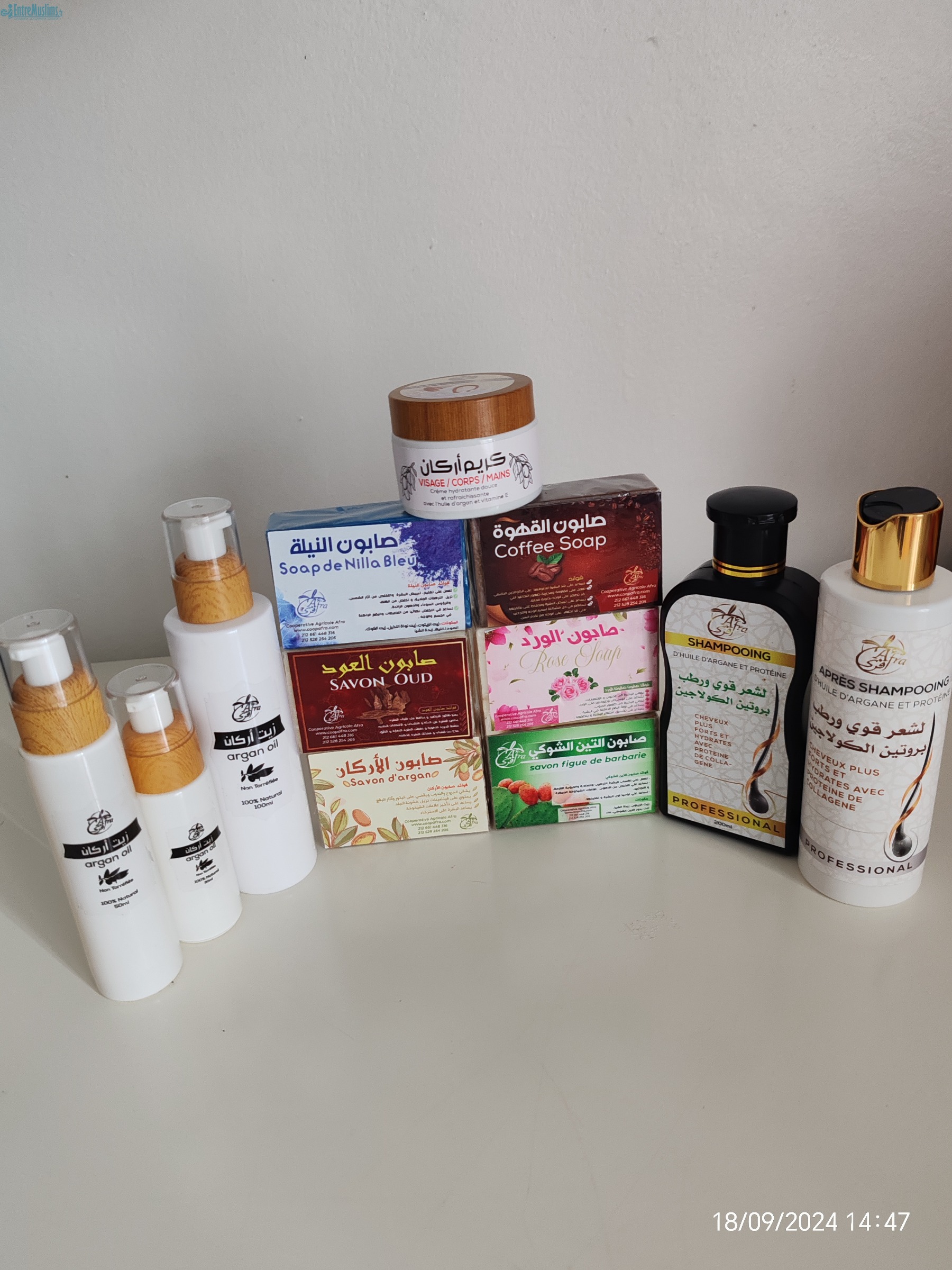 Je vend de l'huile d'argan cosmétique 100ml 20€ 50 ml 12€ 30ml 8€ shampoing d'argan 8€ après shampoing 8€ crème hydratante à base d'argan 8€ savon de rose, de houd, d'argan, de café et de nila sont à 6€ ceci me permettra de me lancer dans cette activité baraka Allah ofikoum de partage envoie possible me contacter par message ou par watssap Salem walaycoum warahmatollah wabarakatou