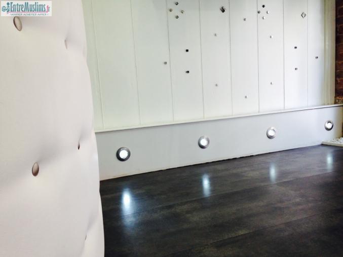 -Espace vente (13m²): grande vitrine, colonne en pierre , luminaire led, peinture stucco ...