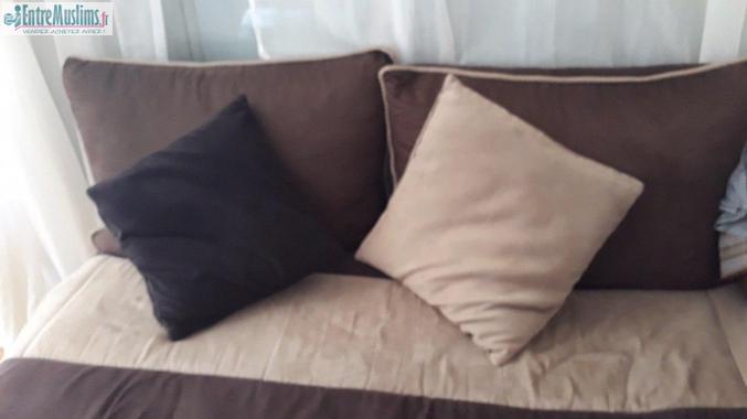 Je vend mon canapé marocain de couleur marron beige en très bon état. Il comprend 3 canapés détachés qu'on peut assembler comme on veut, contient tout les coussins .