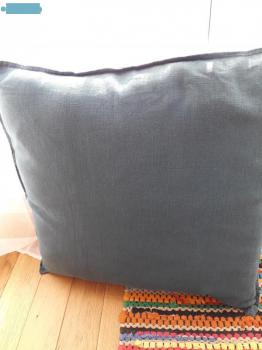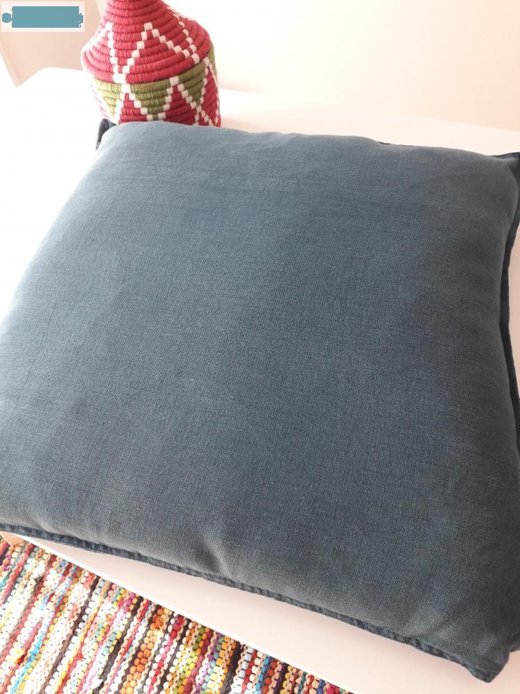 Coussin en lin bleu paon