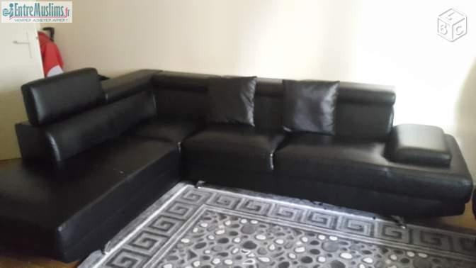 Je vends un canapé simili cuir d'angle droit noir acheté à 550 euros. Je le revends à 180 euros.