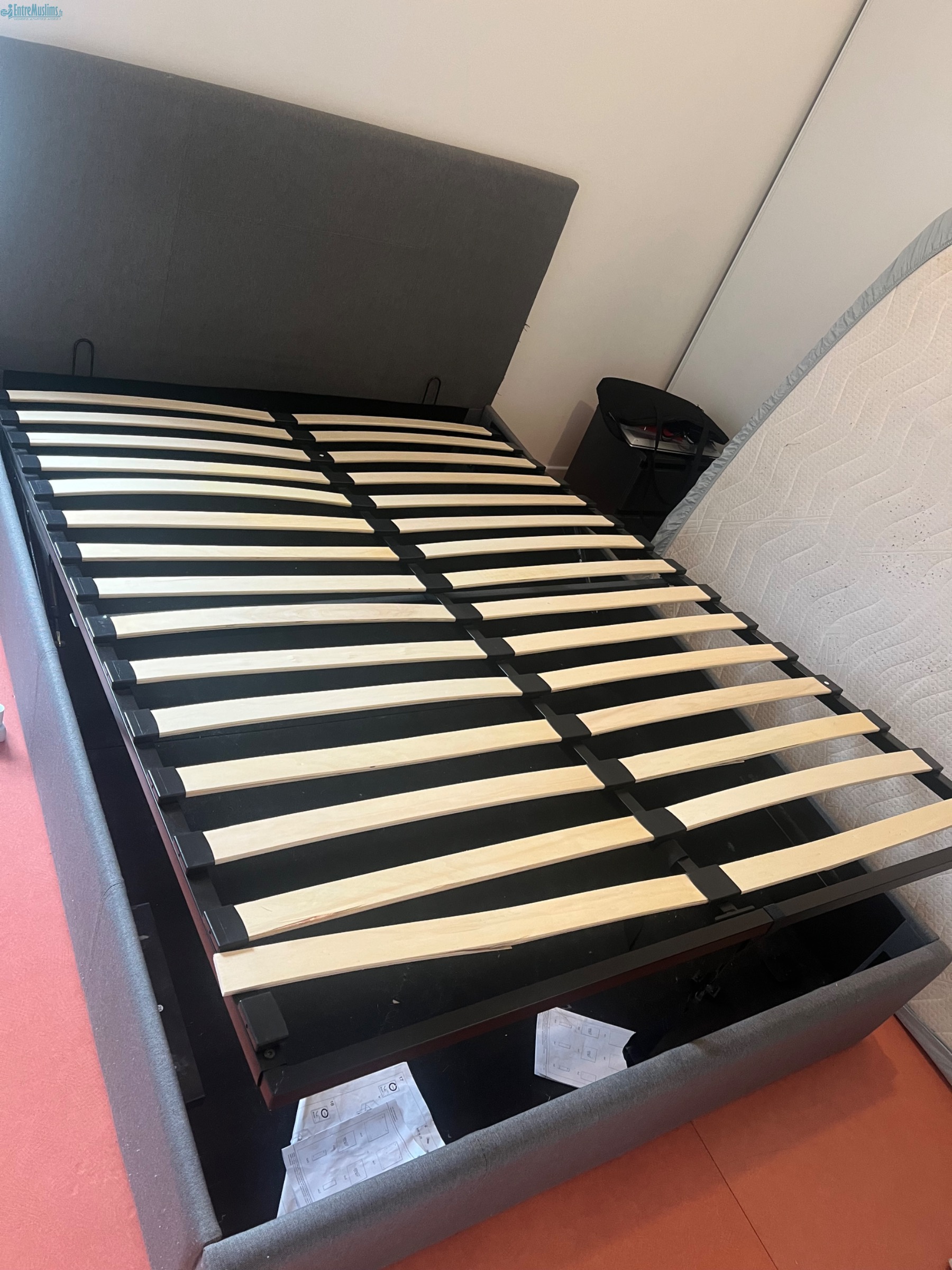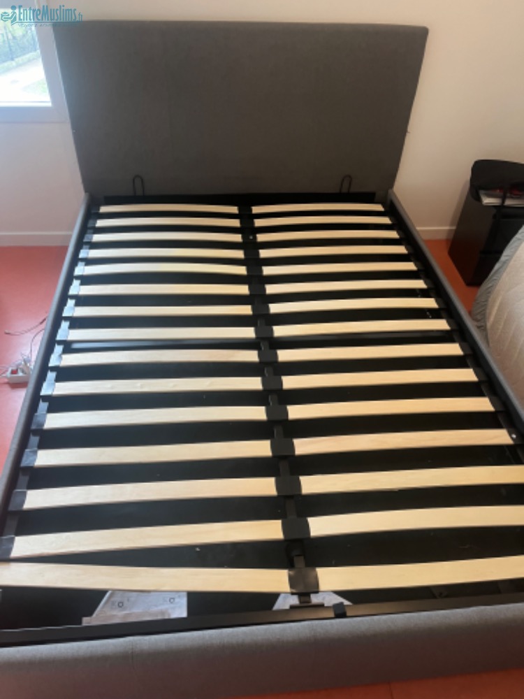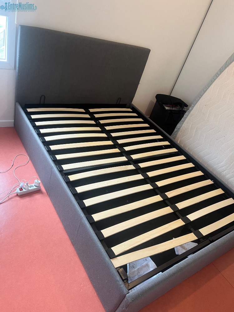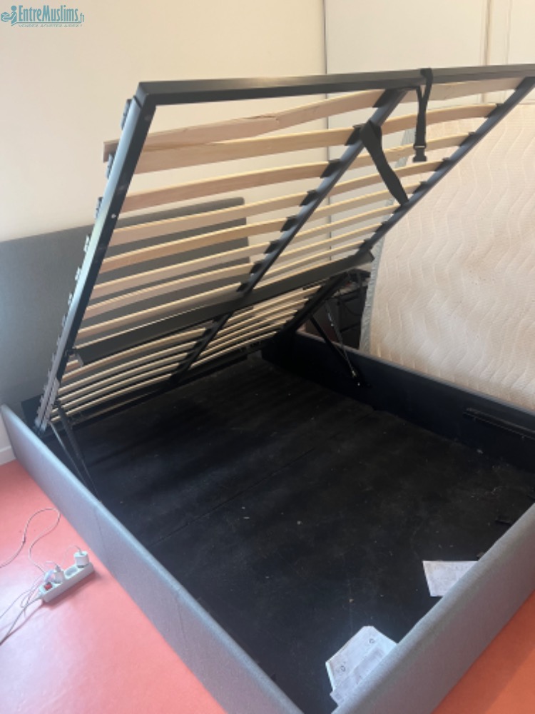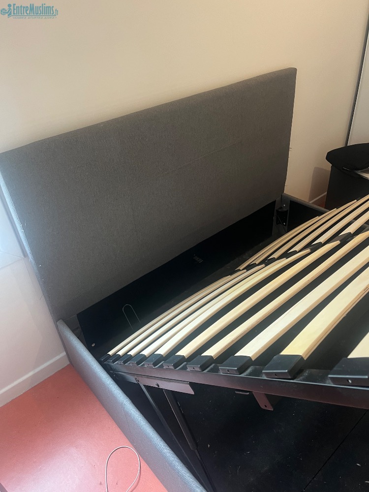 Lit coffre gris de taille 140x190 avec sommier inclus et tête de lit