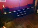 Bonjour, a vendre ensemble meuble télé ikea besta burs et son étagère tres bonne etat, noir laquée Dimensions: banc tv: Longueur 1m80, profondeur 41cm, hauteur 49cm. Etagère: longueur 1m80, profondeur 26cm, hauteur 28cm.