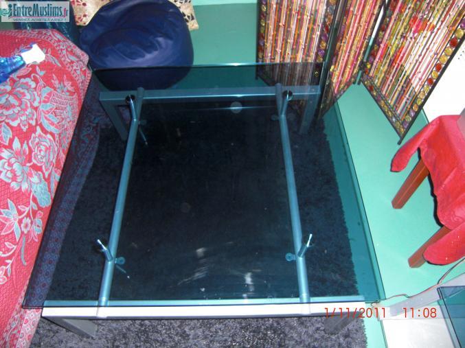 Table basse en verre trempée bleue, TRES BON etat !