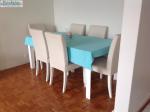A vendre table blanche achetée chez But en janvier elle est comme neuve absolument aucune rayure ni trace car elle a servi moins de dix fois et toujours avec une nappe. La table fait 180cm de longueur pour 90cm de largeur. Elle est vendue avec deux rallonges de 40cm chacune qui se rangent sous la table. Nous la vendons car elle est trop grande pour nous. A venir chercher sur Fontenay aux Roses