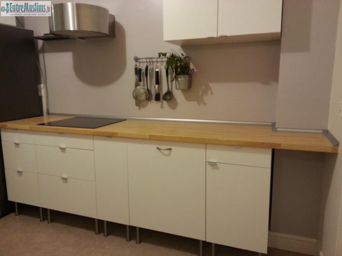 * 2 plans de travail, hêtre avec découpé évier + plaque de cuisson (un plan de travail evier 2m et l'autre 2m60), ils sont à offrir si la cuisine prise en entière.
