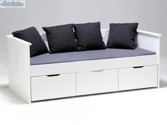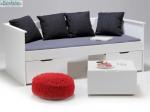 Vente d'un lit banquette laqué blanc avec 3 caissons de rangement, 90x190.