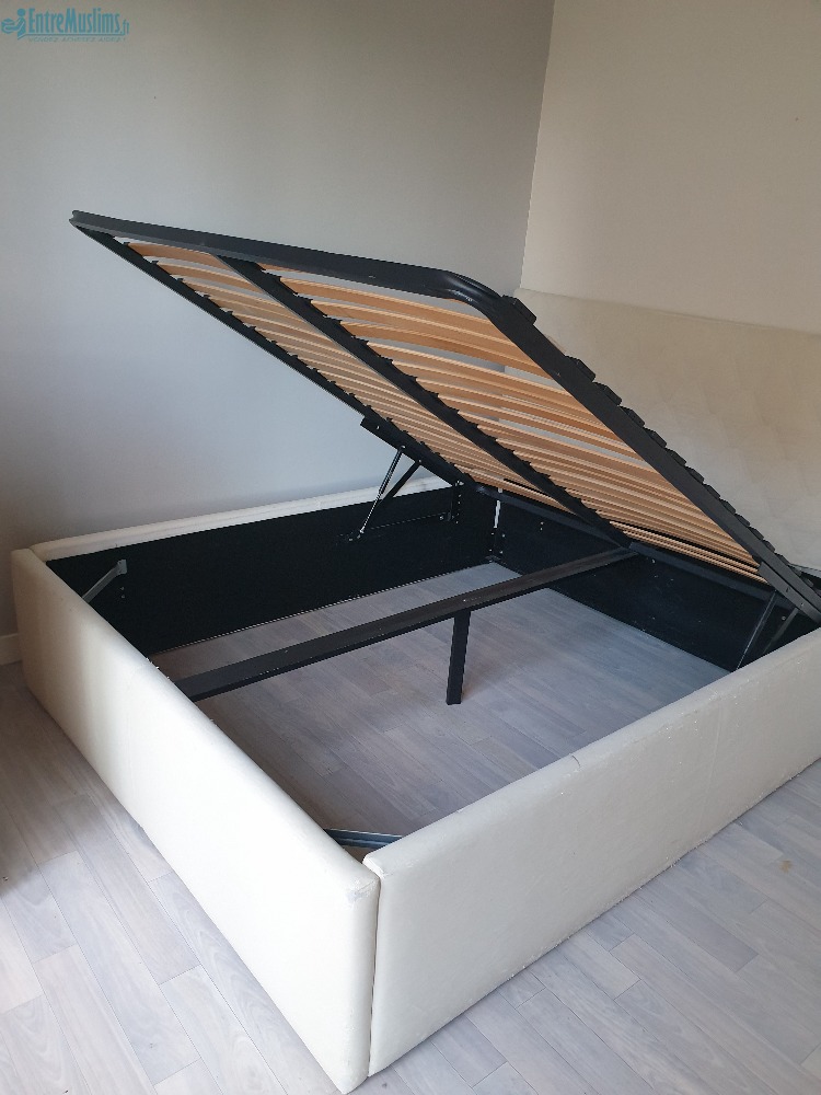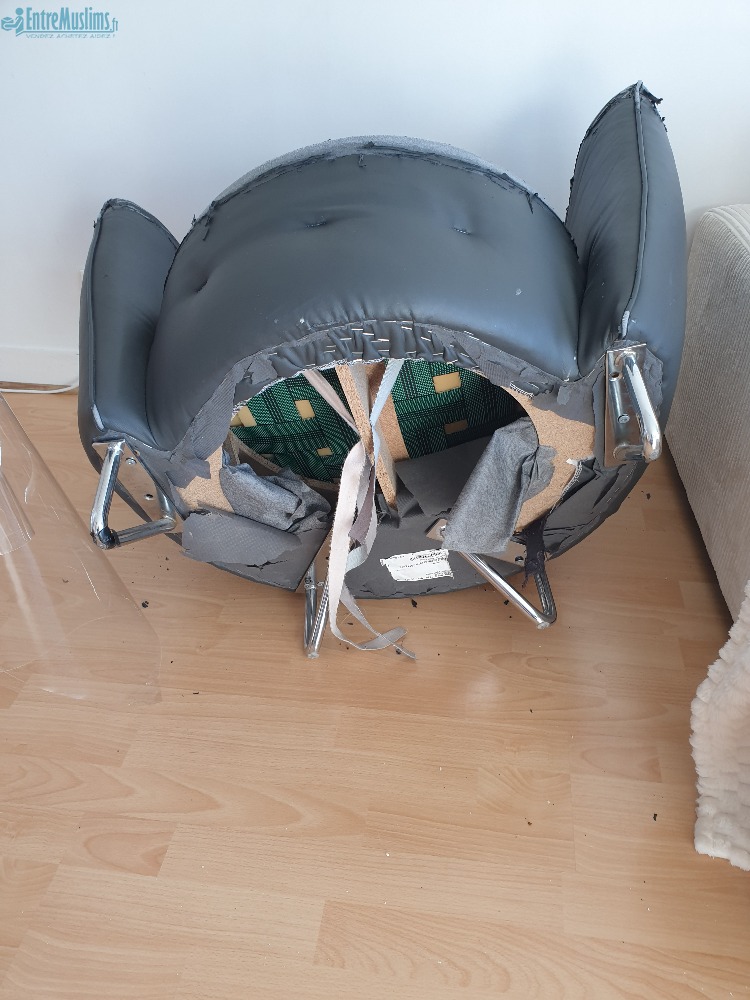 Je donne lit coffre 180 cm/200cm, 4 chaises pieds en acier et fauteuil club noir.