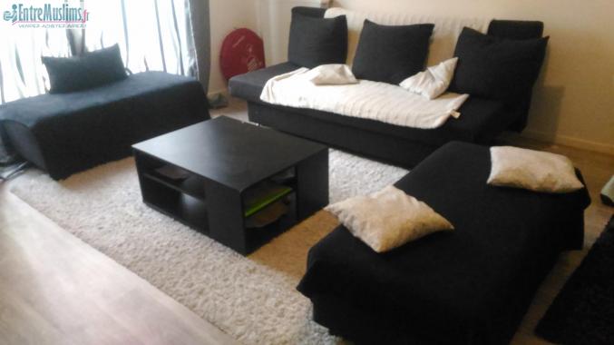 Je vend.mon salon composée de 2 banquette ainsi que un canapé lit 3 places et table base