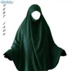 - cape seul emiratie Al Bassira, sans manche avec le bandeau a nouer à part. vert jade/prune/gris