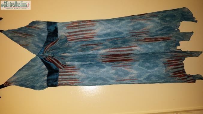 Je vends cette jolie robe couleur turquoise degrader marron neuve acheter dans un beau magasin. Matière légère avec doublure. Le noeud peut se faire devant ou derrière comme vous voulez. Je l'ai jamais porter.