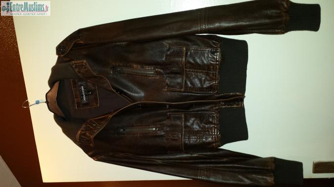 JE vends cette veste en simili cuir marron bien entretenue. Taille L mais peut convenir pour une taille M aussi. Fermeture avec Boutons.