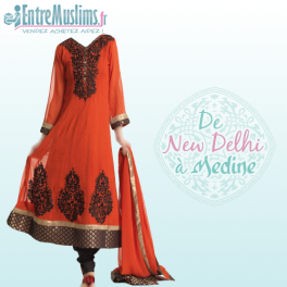 Jolie tenues indiennes, le Churidar Sanya composé de 3 pièces (une tunique, un châle et un pantalon).