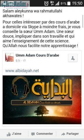 Institut Al bidayah ou ajoutez le compte Facebook ( pour soeurs ) Umm Adam cours d'arabe