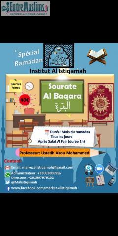A l'occasion de l'arrivée imminente in Chaa Allah du mois béni de Ramadan le markez al Istiqamah vous propose une session d'apprentissage du Quran.
