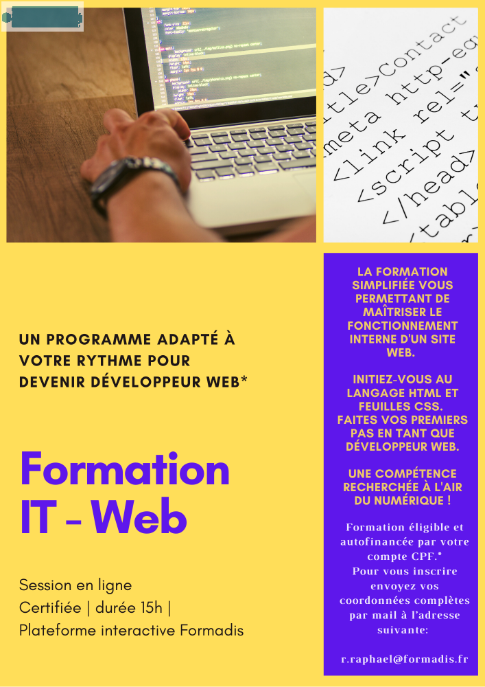 Formation pédagogique en totale e-learning d’une durée de 15h, le temps nécessaire pour se concentrer sur les fondements du HTML ET CSS.