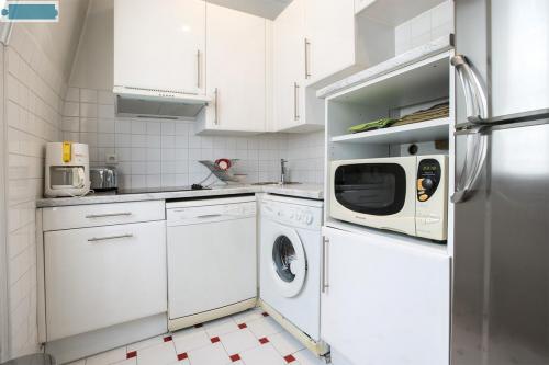 Cet appartement comporte 1 salon, 1 cuisine séparée2 plaques de cuisson, four, lave-vaisselle, X plaques vitrocéramique, four micro-ondes, cafetière électrique) avec bar, 1 salle de douche.