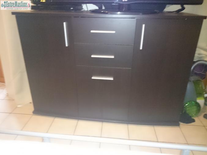 Je vend un buffet marron qu'on peut utiliser également comme meuble à télé. Je l'ai acheté il y a 1an1/2 à conforama (89€).