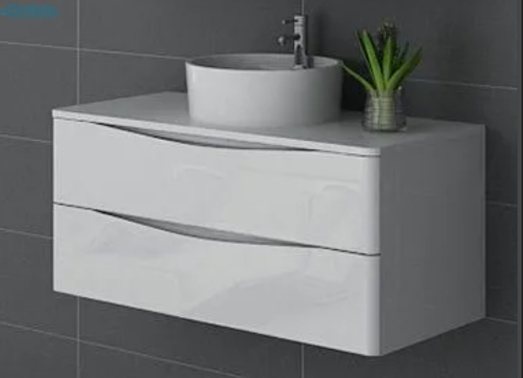 Meuble sous vasque Composé de deux tiroirs avec ouverture par encoche. Dimensions : L 100.5 x P 48 x H 50 cm