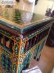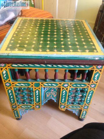 Vend très belle table/ guéridon dessus carrelage mosaïque et tout le pourtour en bois sculpté très belles couleurs .. véritable travail d artisanat