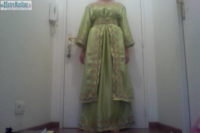 je vends une robe kabyle vert avec fota satin broder en motif berbér 60euro