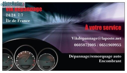 Salam alekoum je viens de me mettre a mon compte dans le dépannage auto. Sur la région parisienne 24/24h 7/7j. N hésitez pas a nous appel en cas de panne,erreur de carburant etc. Et aussi pour vous débarrasser d une veille voiture(gratuitement)
