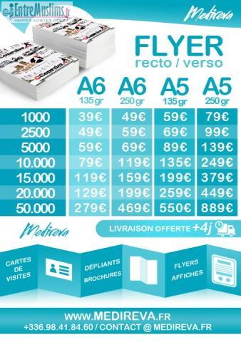 Salam aleykoum je propose mes services d'impression de flyers, stickers, affiches, cartes de visite etc... à petit prix