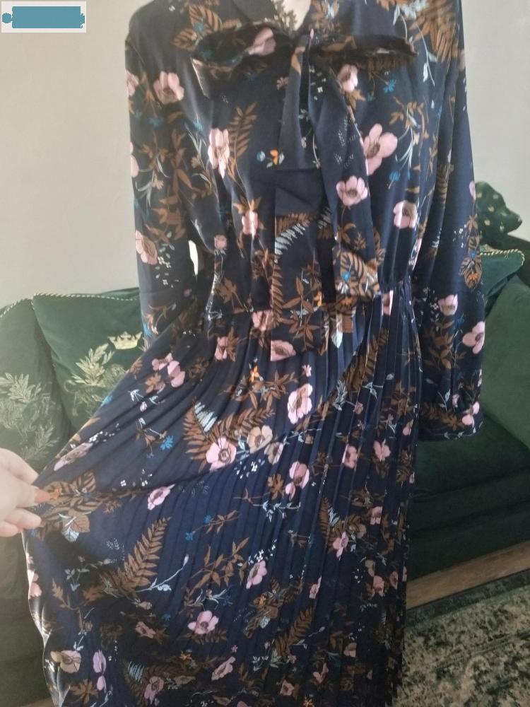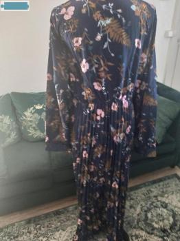 Très belle Robe longue maxi plissée Bleue Marine Fleuries avec Noeud, taille 44/46,