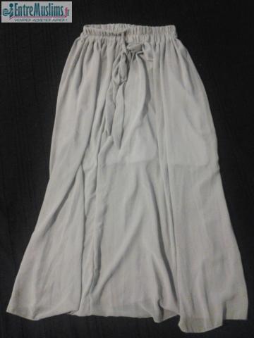 1ere : jupe T 38 grise longue neuf avec doublure courte en dessous du voilage donc on voit la moitié des jambes 5 euros