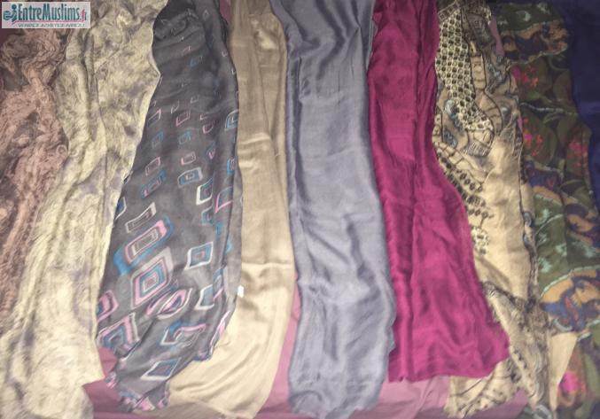je vend quelque foulard jamais utilisez c'est du viscose,une robe perlé de dubai taille L,une veste nafnaf