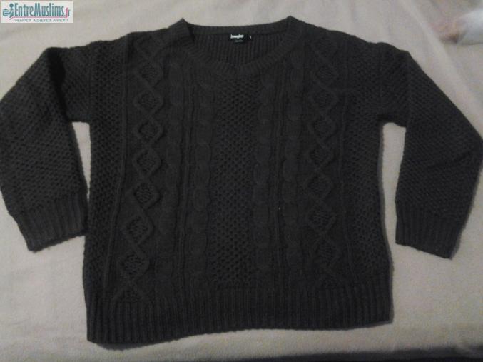 9eme : pull jenyfer taille L blanc devant plus court que derriere cest fait expres 4 euros