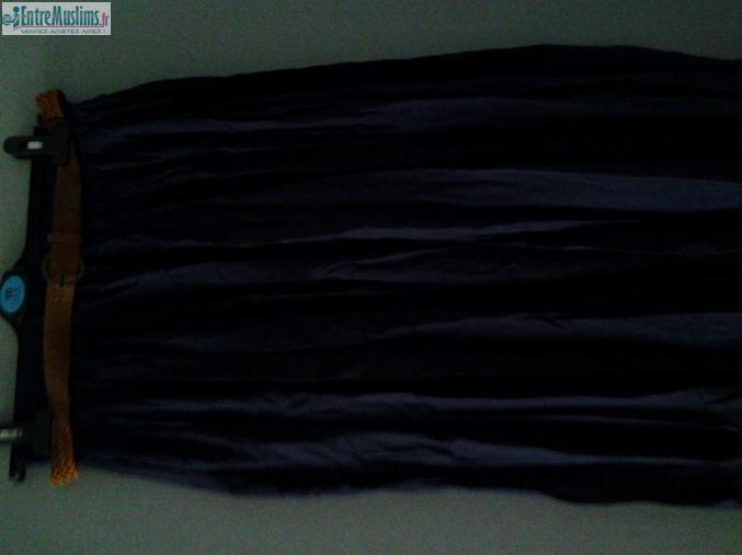 Salam 3alaikoum , je vends une jupe longue bleu marine en tres bon etat avec ceinture tressée marron