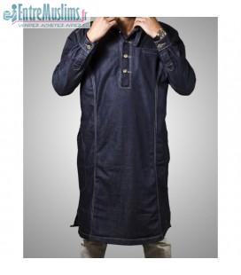 qamis en jeans de la collection The One, célèbre marque de qamis : http://www.almastour.com/42-qamis" />