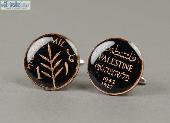 Superbes boutons de manchettes neufs et customisés à la mains, ils sont fait à partir de pièce de monnaie de Palestine, protégé avec une résine.