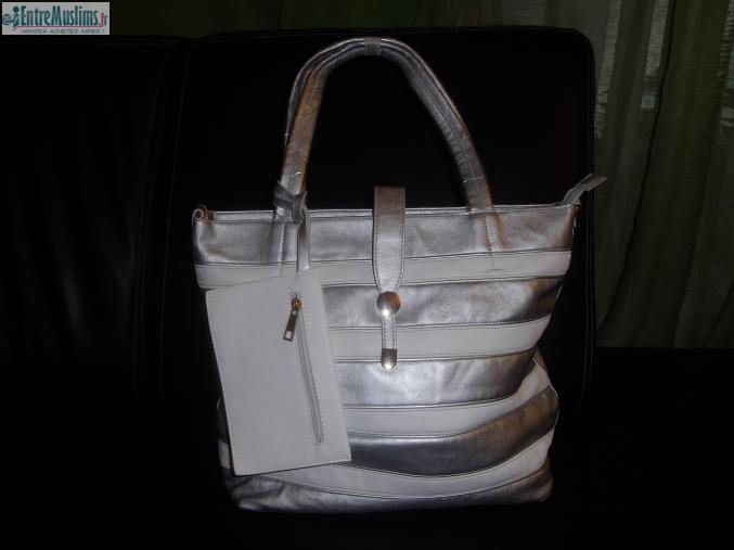 Salem ou aleikoum, je vends ce beau sac à main couleur gris et blanc neuf jamais porté.
