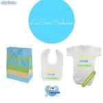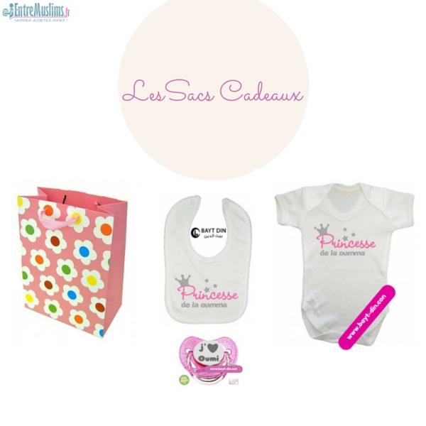 Voici un Ensemble a Offrir pour une Naissance le Sac Cadeau Contient un Body, un bavoir & une Tétine personnalisé avec différents inscription. Rendez-vous sur notre Site www.bayt-din.com
