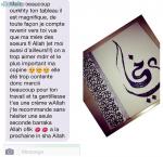 J'effectue des cadres en calligraphie arabe, avec ce que vous voulez ; prenom, kunya, 2 prenoms(couple par exemple), du dhikr, la chahada, phrase...etc
