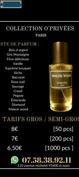 Salam aleykoum je suis grossiste en parfum 50mlde marque O'privee kous avons toute les références possibles (bois gris baccarat ambre mula mula aisha ext..) la boutique est à saint ouen 93400 au 110 avenue michelet