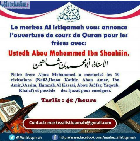 Le Markez Al Istiqamah vous annonce l’ouverture de cours de Quran pour les frères avec :