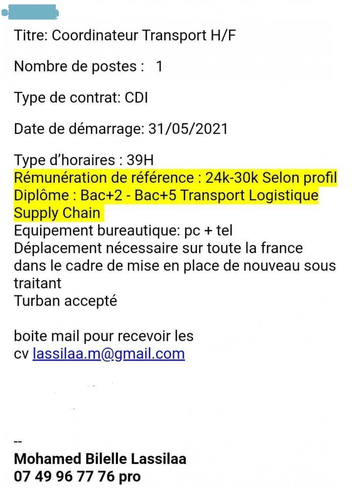 Diplôme bac+2/bac+5 transport logistique supply chain exigé.
