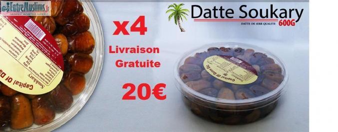 Super promo 4 boites de dattes sukkari à 5 euros seulement la boite de 600 grammes.