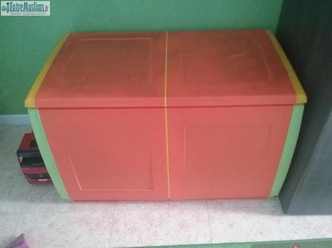 Très grande capacité, plastique, bon état, peu servir de coffre a jouet ou de rangement jardin