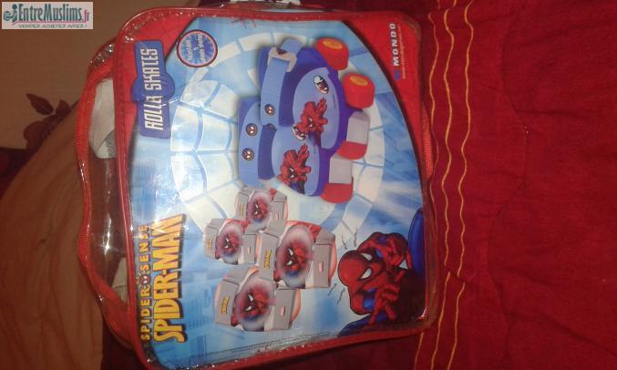 Patin a roulettes spiderman avec ses protège utiliser une fois.