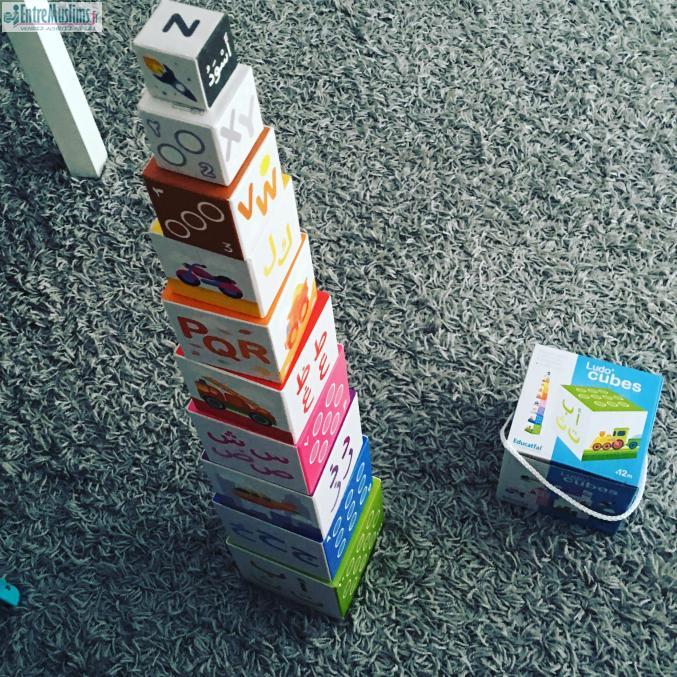 Ludo cubes : Tour de 10 cubes à empiler 10 jolies cubes à empiler et à encastrer pour découvrir les lettres, les chiffres, les couleurs, les véhicules et apprendre à compter. Ce jouet bilingue arabe-français, unique en son genre, fera le bonheur des tout-petits.