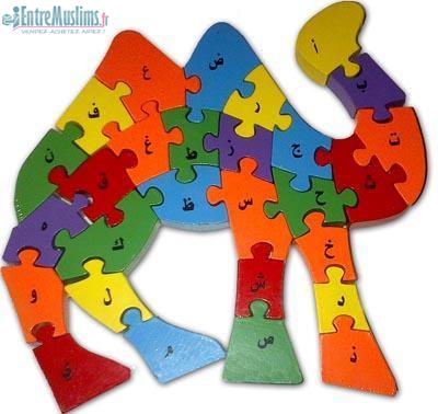 Le Premier Puzzle Bilingue au Monde représentant un chameau avec ses lettres arabes et françaises en 28 blocs.