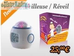 Ce réveil indique exactement quand il est temps d’aller dormir et quand il faut se réveiller. Grâce à sa fonction lui permettant de projeter un ciel étoilé au plafond, les enfants ne se feront pas prier pour aller au lit. Sans oublier que les Sourates du Coran diffuser par ce réveil est agréable pour l'enfant et que la lumière s’adapte au rythme de la récitation du Coran.