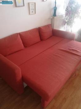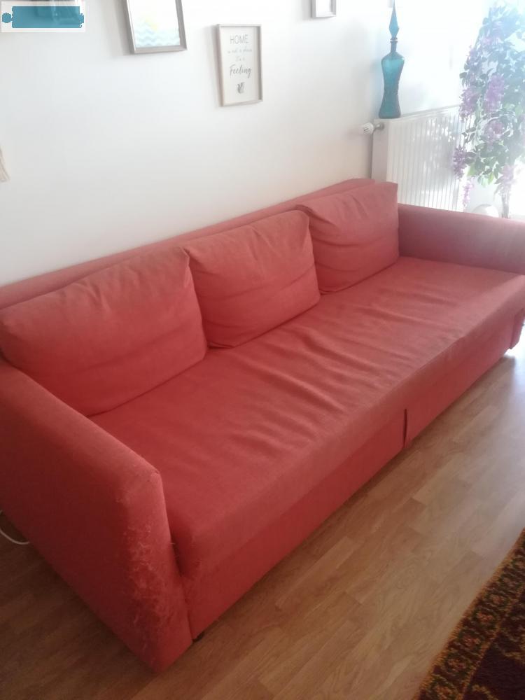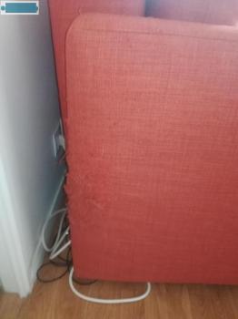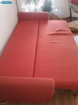 Donne canapé lit avec coffre de rangement, bon état général mais un peu abîmé sur les coté ( le chat!!)