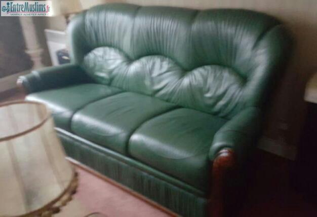 Donne canapé convertible en cuir vert et 2 fauteuils pouvant encore bien servir à retiré de toute urgence avec camion pas d'étage de plein pied