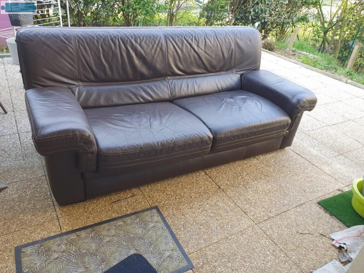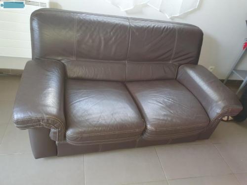 Donne canapés en cuir l un de 3 places l autre de 2 places.