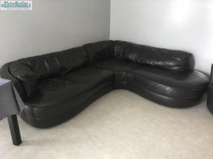 Vend cet ensemble canape noir en cuir Veritable avec le mini canapé